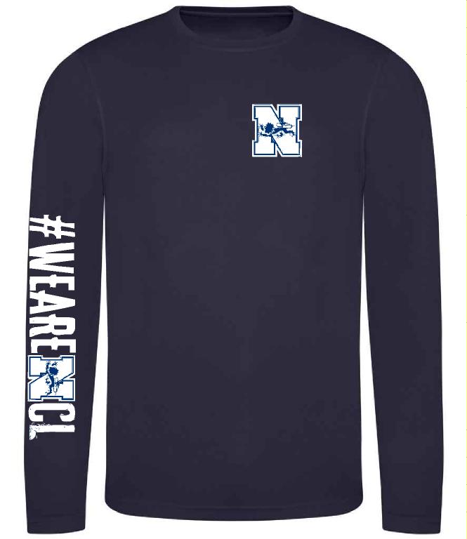 Newcastle University Leisure Cotton long sleeve top including small printed ‘N’ logo on left chest and We Are NCL logo on right arm.